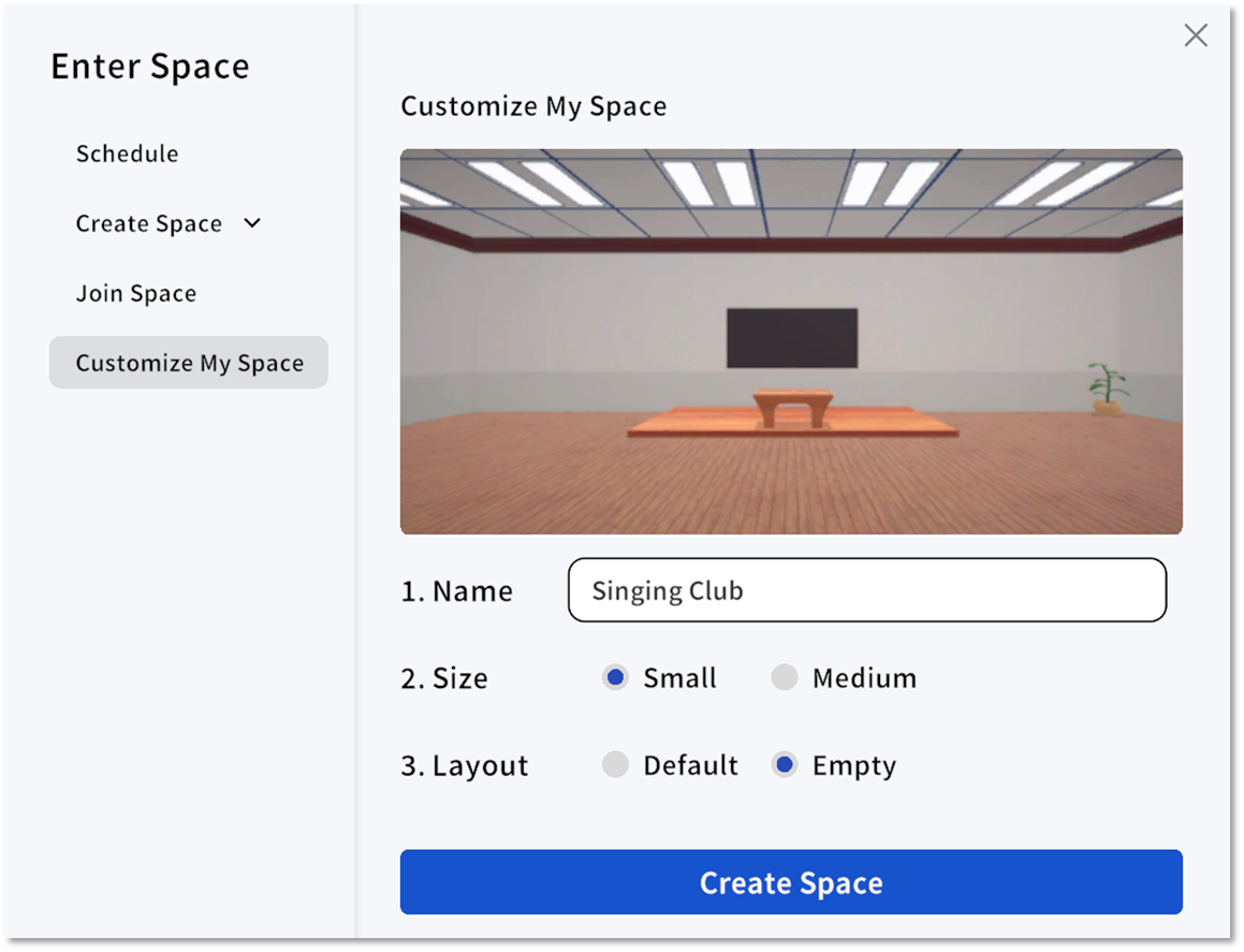 3- النقر على "تخصيص مكاني" وإدخال اسم المكان واختيار الحجم والتخطيط
