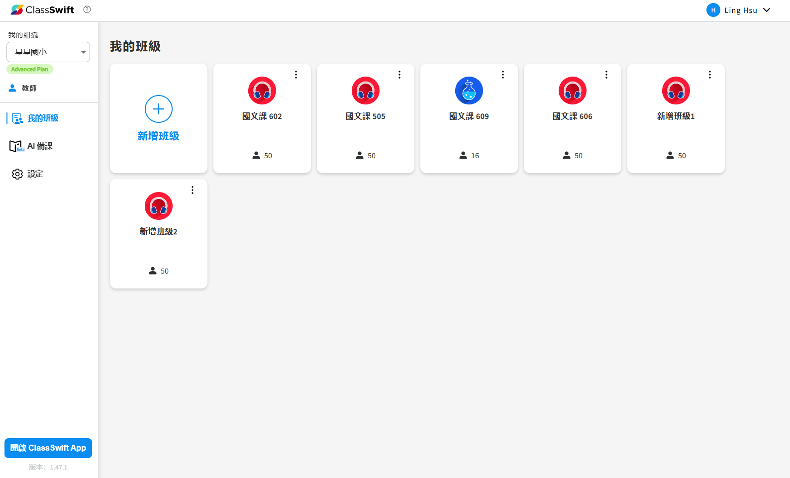 「我的班級」是 ClassSwift 班級管理後台的首頁,讓教師能夠管理課堂、學生名單,並存取課堂紀錄。
